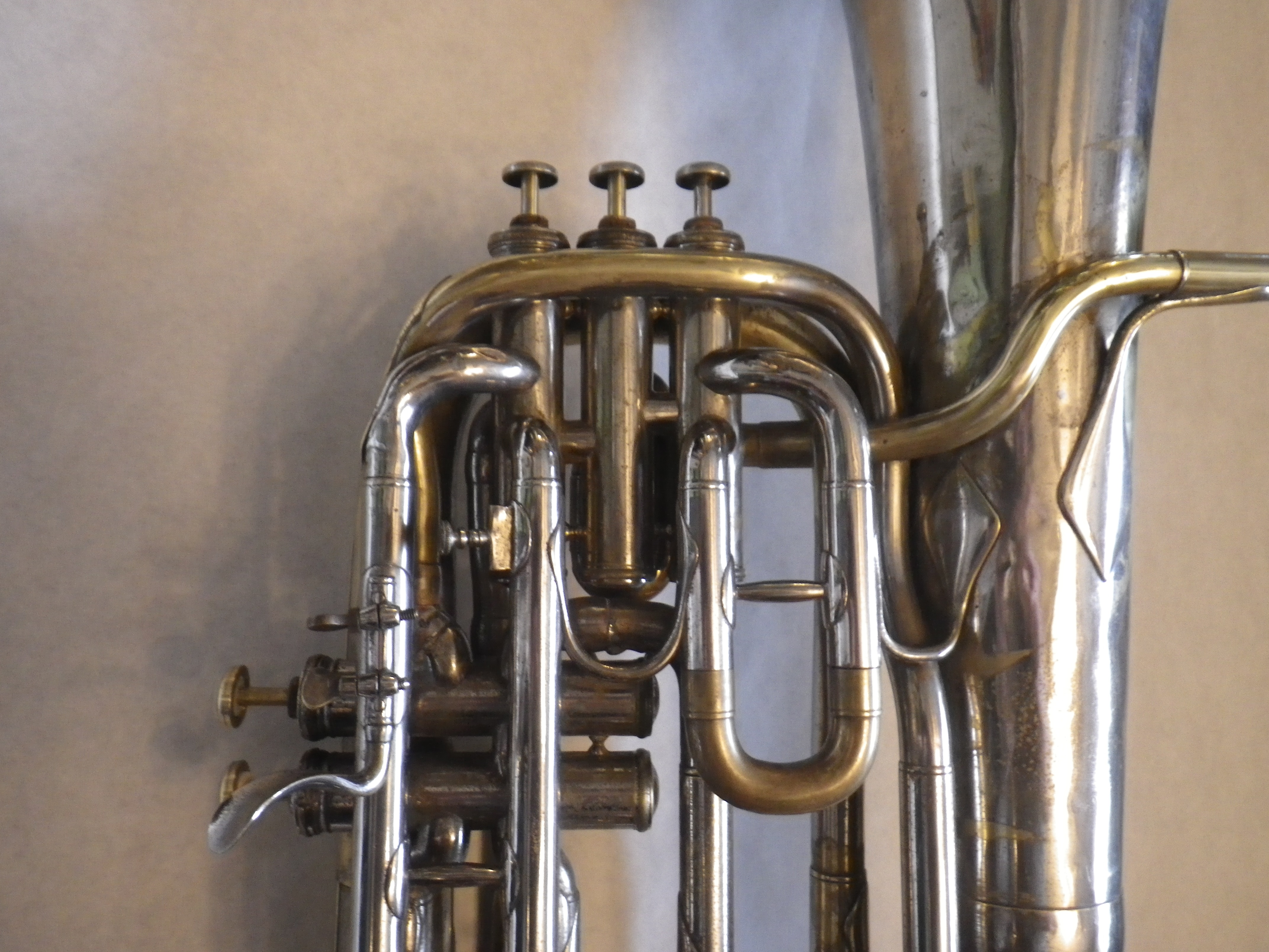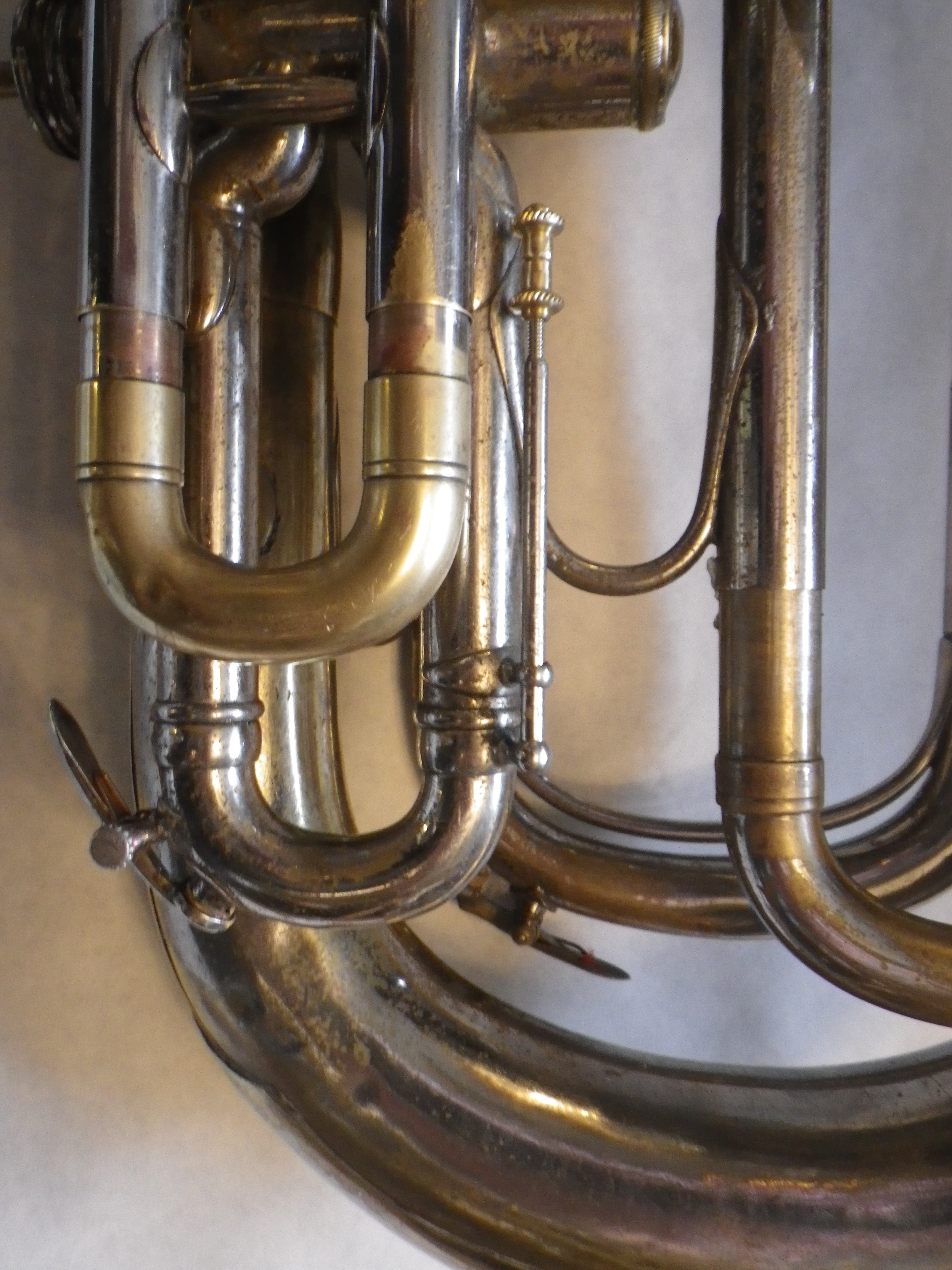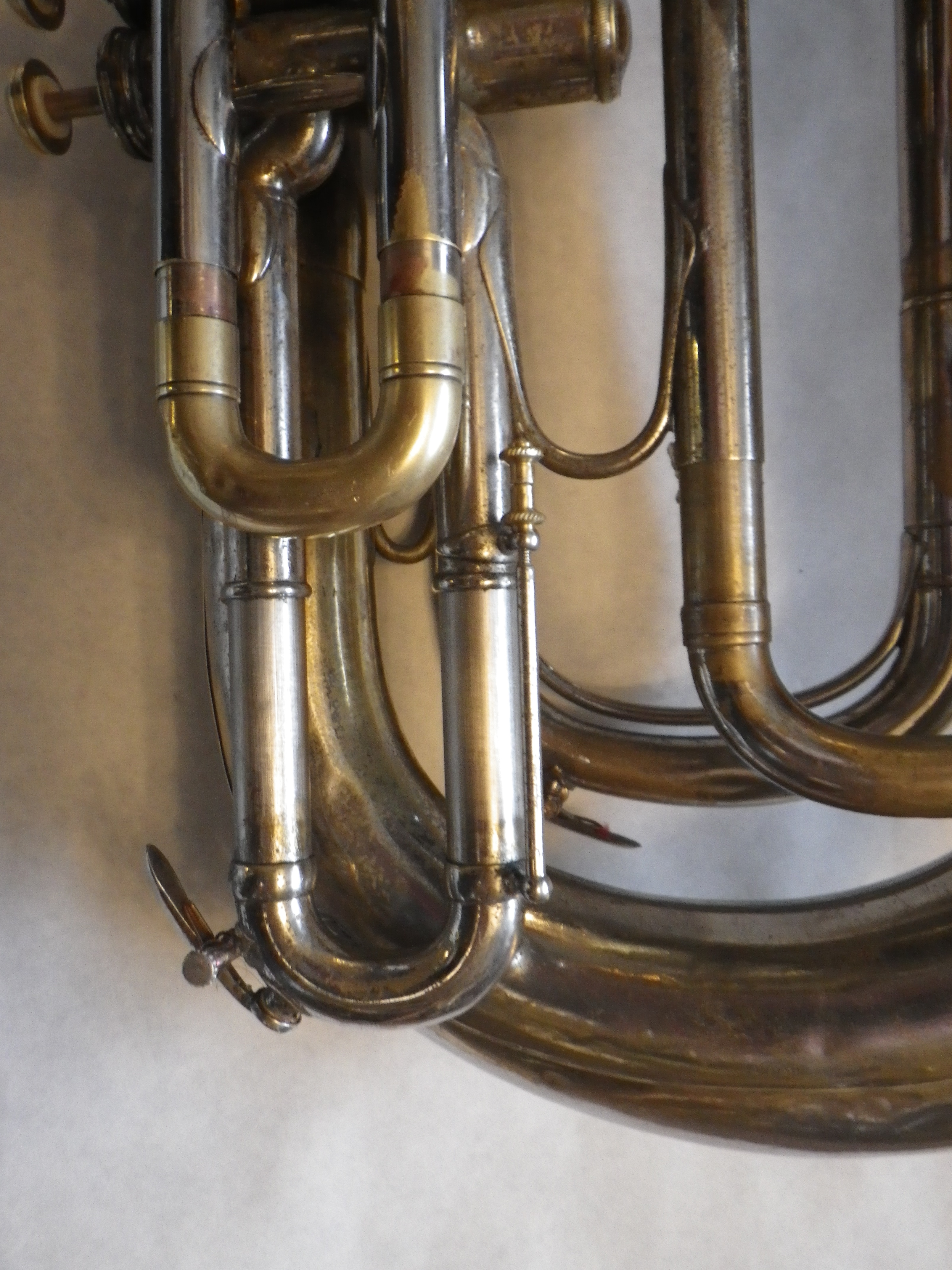 Interesting hand rest and quick change stop rod for fifth valve slide.
