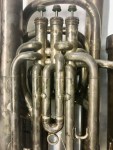 Decorative engraving on bell. “50 MEDALS OF HONOR / BESSON / LONDON / PARIS / NEW YORK / MADE IN ENGLAND” on bell. Front-facing detachable bell.