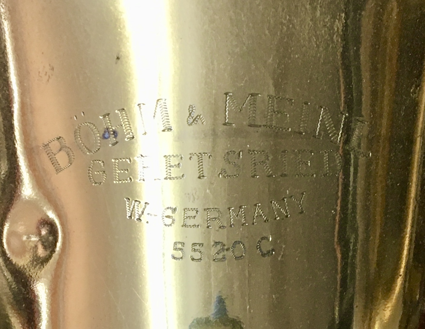 “BÖHM & MEINL / GERETSRIED / MADE IN W. GERMANY / 5520C” on bell.