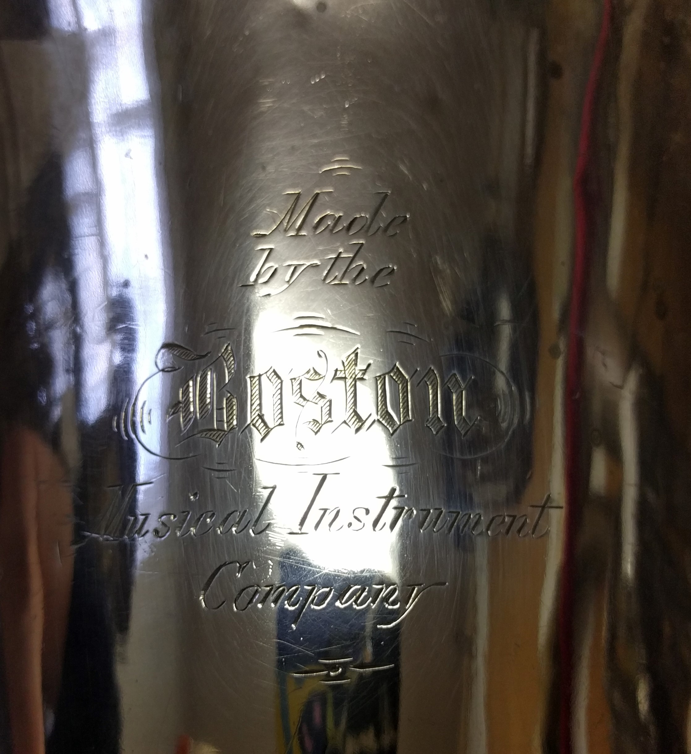 Comments: “MADE/BY THE/BOSTON/MUSICAL INSTRUMENT/COMPANY” on bell.