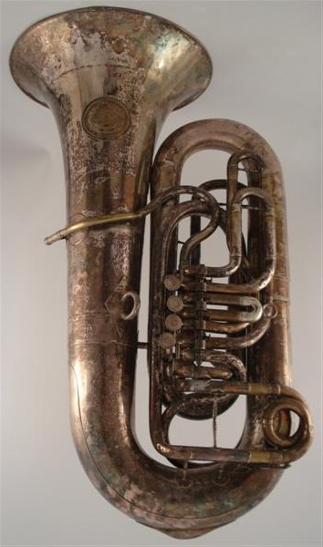 This tuba is probably an example of Cerveny’s primer quality concert tuba, owing to all the beautiful touches, from the engraved valve mechanism, to the incredible dealers label.