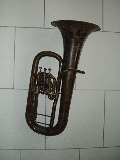 Conn, B flat baritone, 3 piston, 1905 Tag #: 01058 Serial #: 88182 Bell Diameter Bore Size Height 11 3/8″ .525″ 26 3/4″ Comments: “MADE BY / C.G. CONN / ELKHART, IND. / AND / NEW YORK” on bell. Ornate floral engraving around identification marks on bell. Share this: Click to share on X (Opens in new window) X Click to share on Facebook (Opens in new window) Facebook Like Loading...