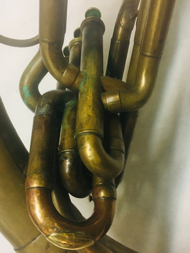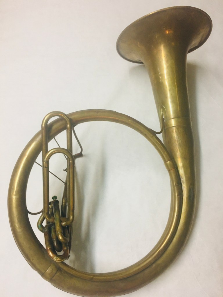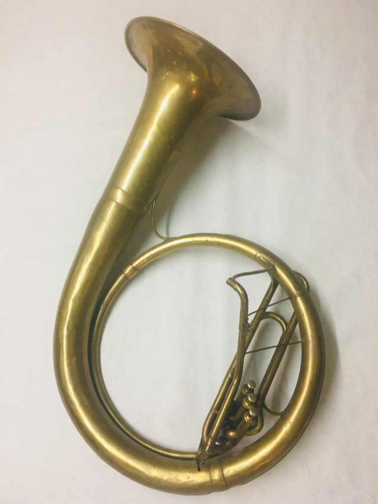 This helicon is the only instrument in the collection that has the piston valve design by the German inventor and musician, Heinrich Stölzel, which he patented in 1815. The design of piston valves was continuously improved until 1839 when the French musical instrument maker, François Périnet invented the piston valve system that is still used today.