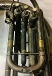 Buescher, BB flat sousaphone, 3 piston, 1925 Tag #: 200708 Serial #: 182868 Bell Diameter Bore Size 29 7/8″ .770″ Comments: “THE BUESCHER / ELKHART – IND.” on bell. Share this: Click to share on X (Opens in new window) X Click to share on Facebook (Opens in new window) Facebook Like Loading...