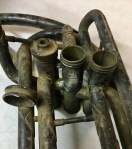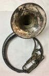 Identification marks have been tarnished and are illegible. This is essentially a Buescher euphonium that has been wrapped into the form of a small sousaphone. Not everyone fits inside this one.