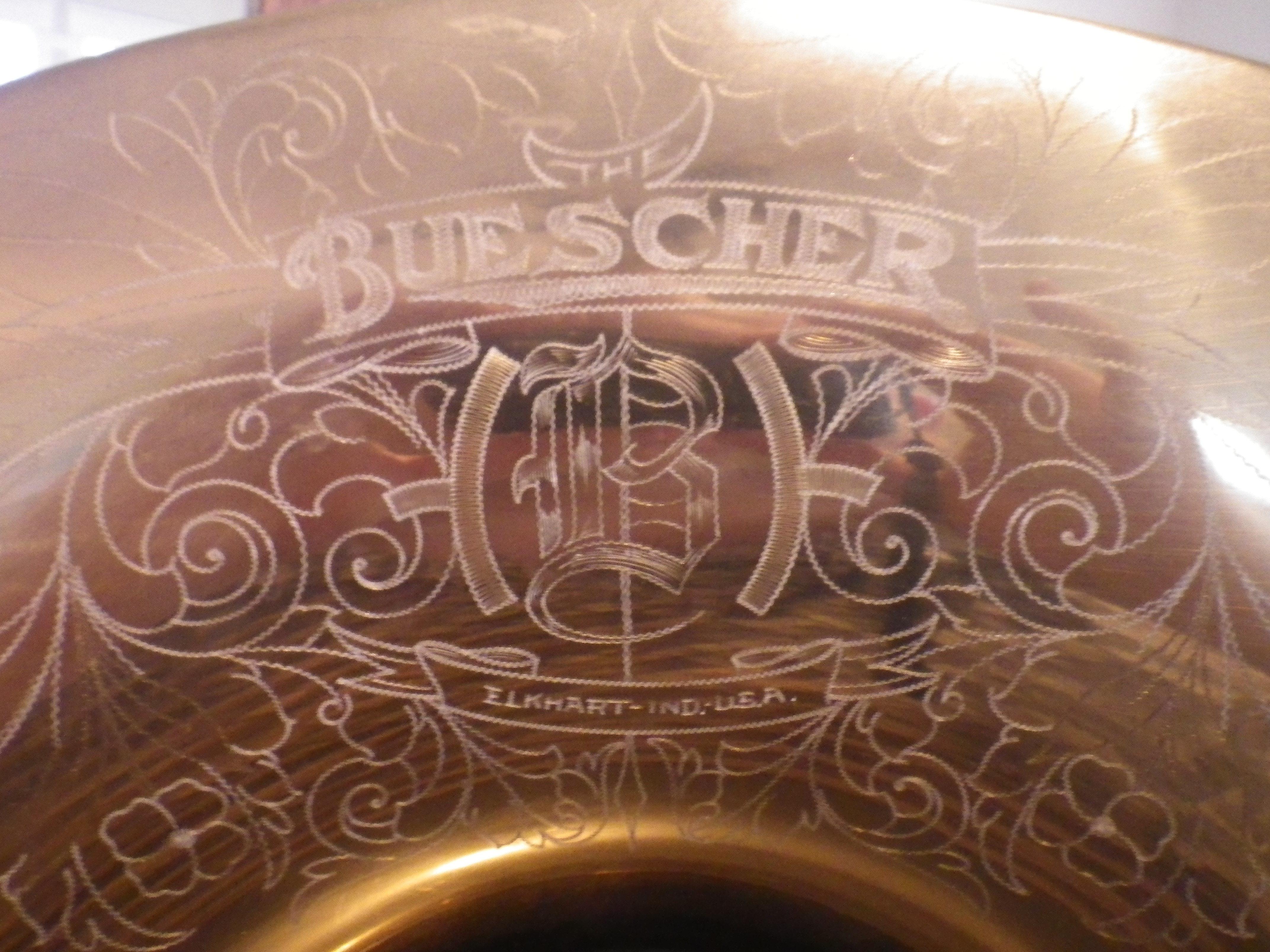 Comments:“The / Buescher / B / Elkhart – Ind. – U. S. A. ” engraved on front of bell in decorative scroll.