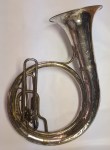 Comments: “SUPERIOR/HENRY DISTIN MFG. CO./MAKERS/WILLIAMSPORT. PA./HIGHEST GRADE/14080” on bell. Picture above shows the Washing Redskins band from 1937 with the helicon included.