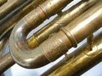 Comments: “SUPERIOR/HENRY DISTON MFG CO./MAKERS/WILLIAMSPORT.PA/HIGHEST GRADE/14559” Ornate floral engraving around text on bell. Eagle with trumpet held from its feet is also featured on the bell under the text “SUPERIOR”.