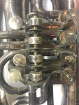 Coat of arms seal on bell. “PATENT / CLEAR BORE / CLASS / A / (small coat of arms) / EXHIBITION / PRIZE MEDALS / AWARDED / TO / J. Higham Ltd. / MAKERS / 127 STRANGEWAYS / MANCHESTER/ ENGLAND / 55435” on bell. “FILLMORE BROTHERS / COMPANY / CINCINNATI / SOLE AGENTS / UNITED STATES” added to bell later.