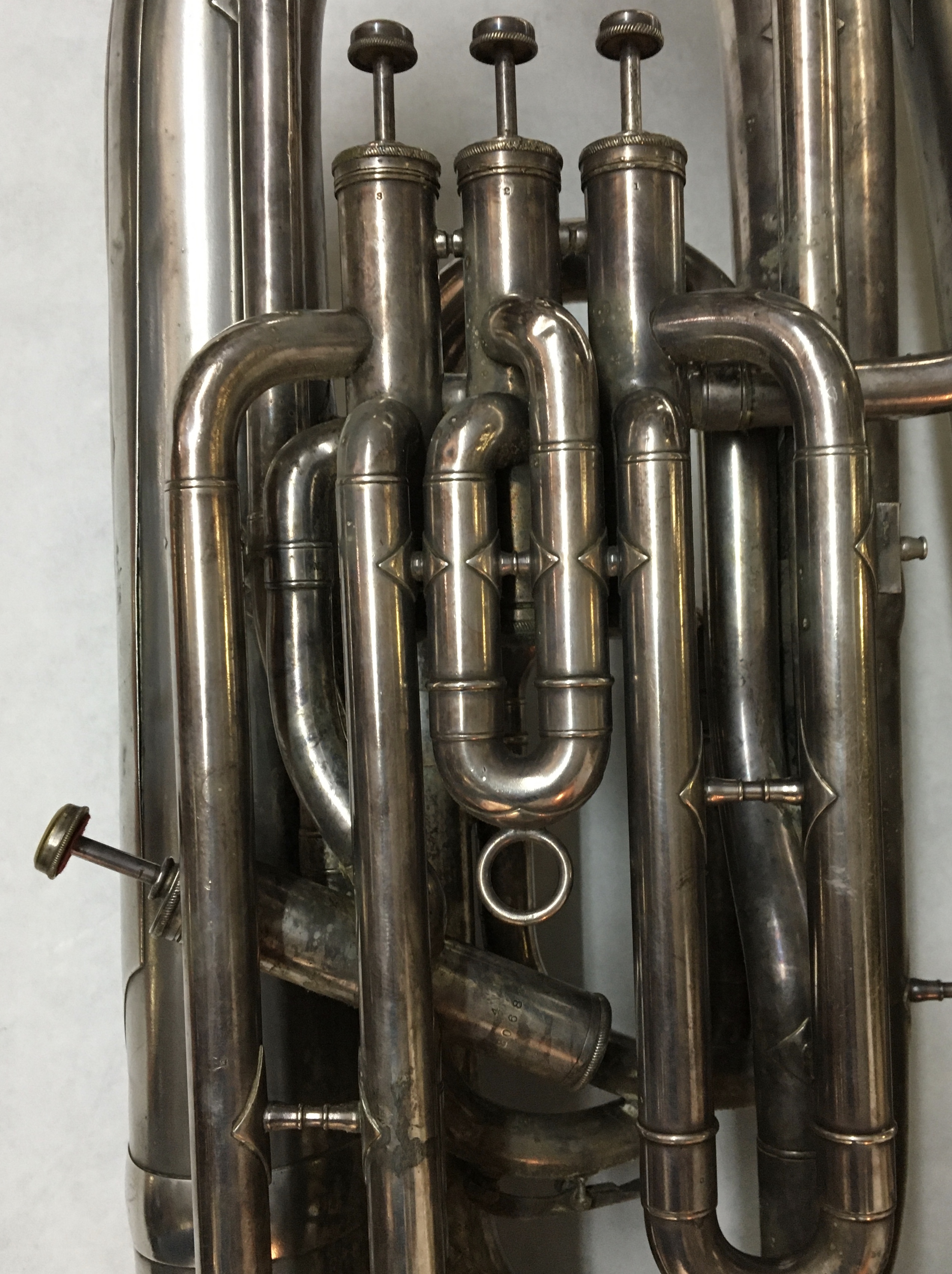 Sherman Clay & Co. San Francisco / Made By / Frank Holton & Co. / Chicago / floral engraving around the words.