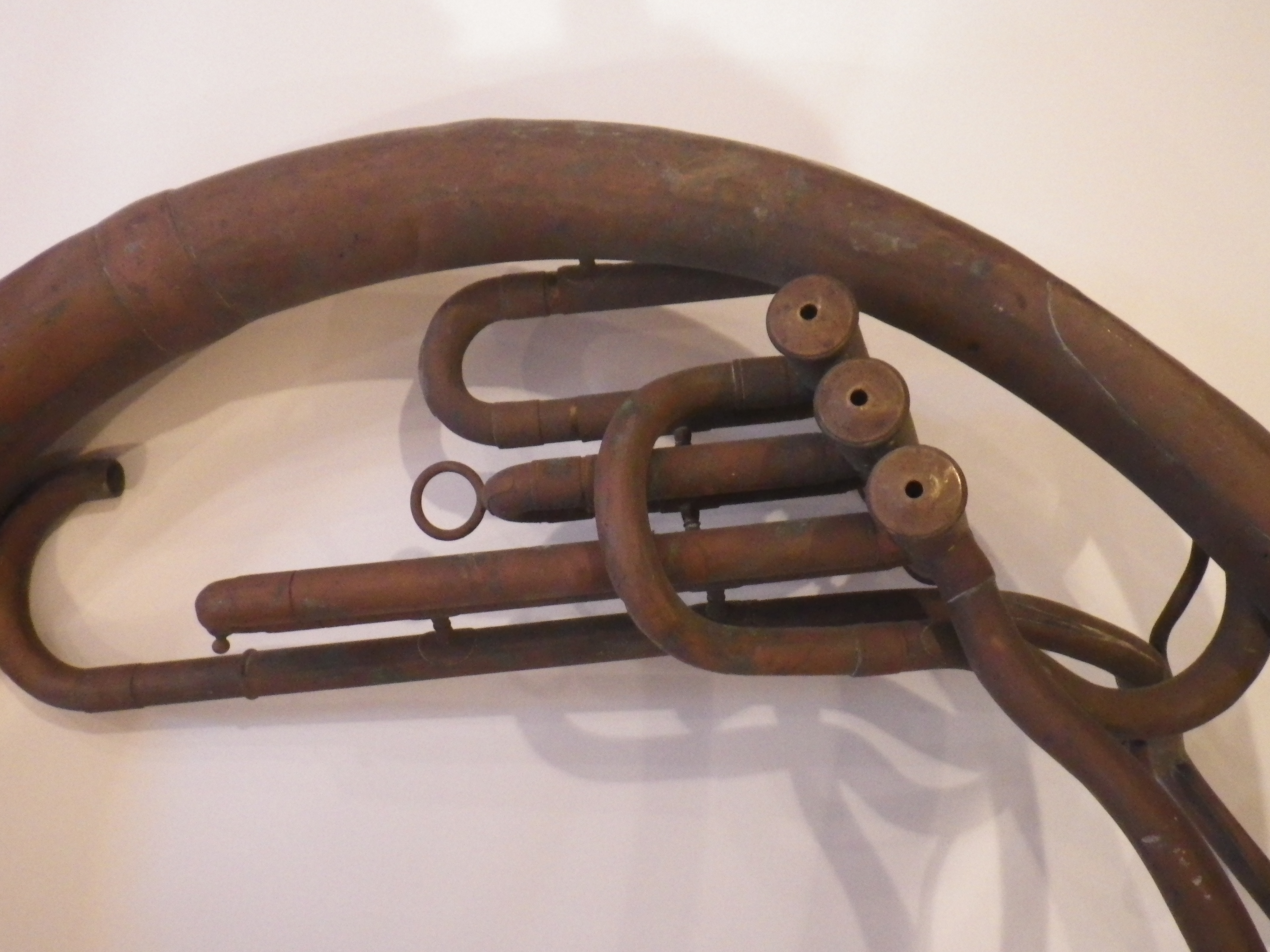 M. J. Kalashen, E flat Helicon, 3 piston, ca. 1920-1939 Tag #: 201501 Serial #: 2288 Bell Diameter Bore Size 12 5/8″ .525″ Comments:“M.J. KALASHEN/NEW YORK” and serial number 2288 engraved on bell inside of decorative scroll. Share this: Click to share on X (Opens in new window) X Click to share on Facebook (Opens in new window) Facebook Like Loading...
