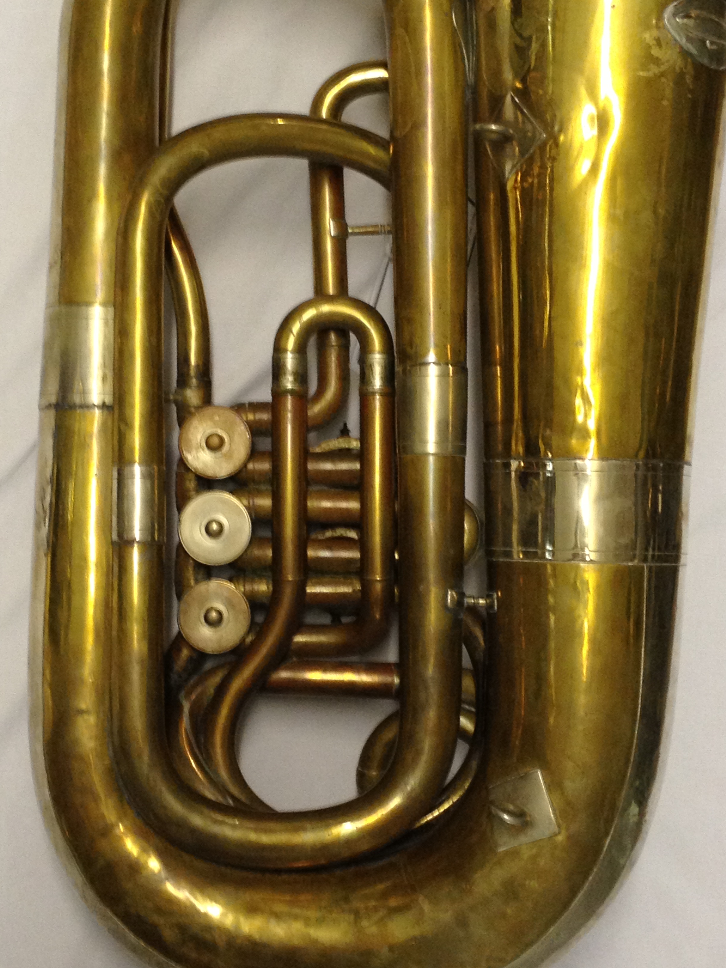 Mallach, BB flat tuba, 3 rotary, ca.1910 Tag #: 02396 Serial #: Bell Diameter Bore Size Height 17 1/8″ .790″ 40 1/2″ Comments: “F. MALLACH / KAISERLAUTERN” on bell. Share this: Click to share on X (Opens in new window) X Click to share on Facebook (Opens in new window) Facebook Like Loading...