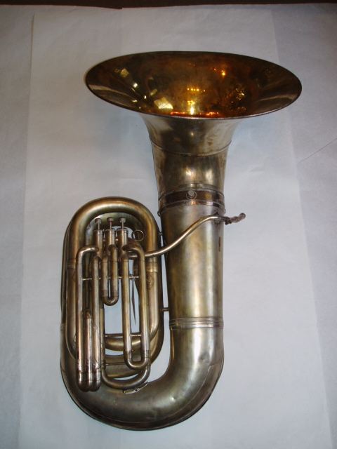 Martin, recording, BB flat tuba, 3 piston, c.1962 Tag #: 01161 Serial #: 215913 Year Key Valve 24.0″ .720″ 47 1/2″ Comments: “THE / MARTIN / ELKHART IND / USA / RMC (enclosed in seal-shape border)” on bell. Ornate floral engraving around identification marks. Share this: Share on X (Opens in new window) X Share on Facebook (Opens in new window) Facebook Like Loading...