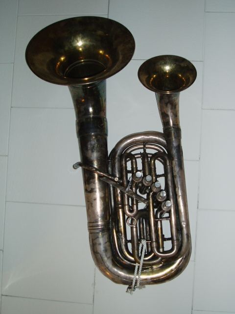 Martin, Handcraft, double belled, B flat euphonium, 5 piston, c.1935 Tag #: 03856 Serial #: 115951 Bell Diameters Bore Size Height 11 1/4″ & 6.0″ .560″ 29 1/4″ Comments: Share this: Click to share on X (Opens in new window) X Click to share on Facebook (Opens in new window) Facebook Like Loading...