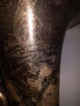 Comments: “PAN AMERICAN/MADE IN/ELKHART-IND/U.S.A.” on bell. Unique engraving around text.