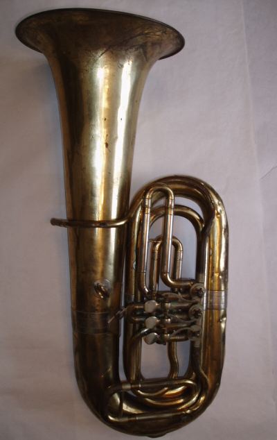 Unmarked, BB flat tuba, 3 rotary Tag #: 02852 Serial #: 013223 Bell Diameter Bore Size Height 15 1/2″ .790″ 39 3/4″ Comments: European, possibly Czech. Share this: Click to share on X (Opens in new window) X Click to share on Facebook (Opens in new window) Facebook Like Loading...