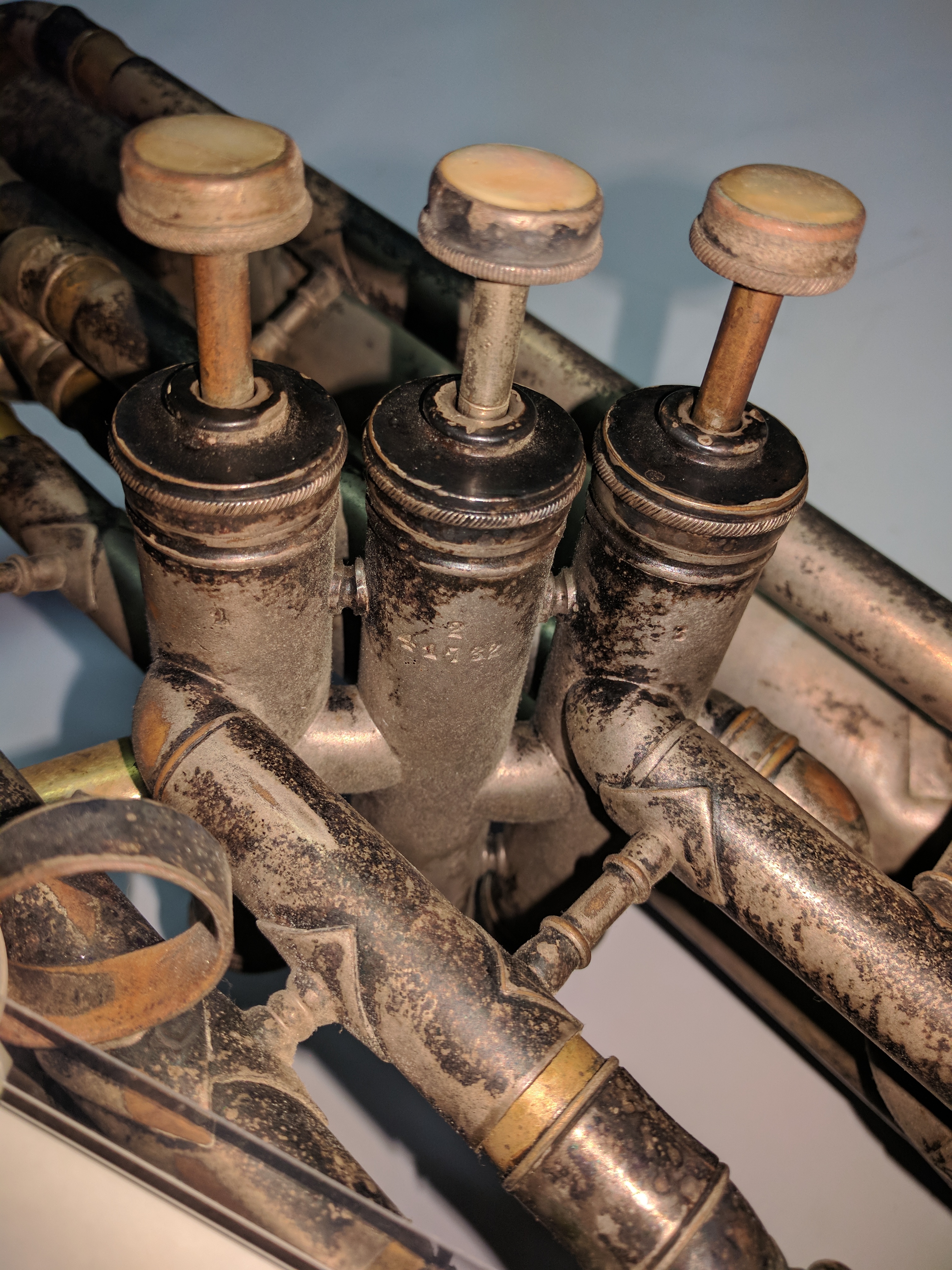“Made By / J.W. York & Sons / Grand Rapids / Mich.” on bell. Some floral engraving around identification marks.
