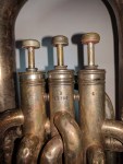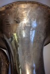 “U.S.Q.M.C.” on rim of bell. “Made By / J.W. YORK & SONS / Grand Rapids / Mich.” on bell. Ornate floral engraving around identification marks. Hi/Lo pitch patented loop present.