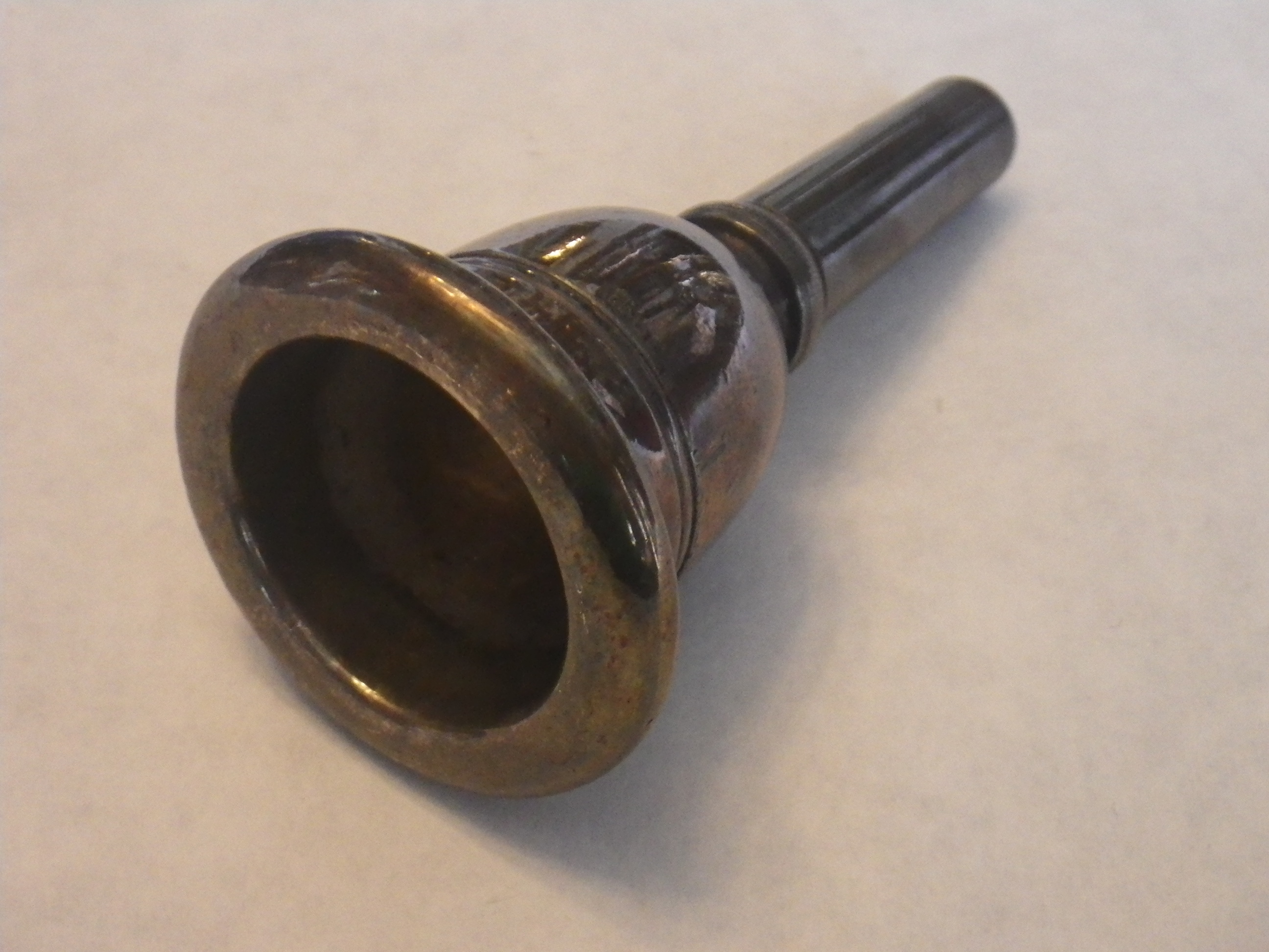 “H″ text on side. This first type of Helleberg tuba mouthpiece was only marked with an “H” on the cup. Contrast this with the full “Helleberg” marking of the 1930’s Helleberg.