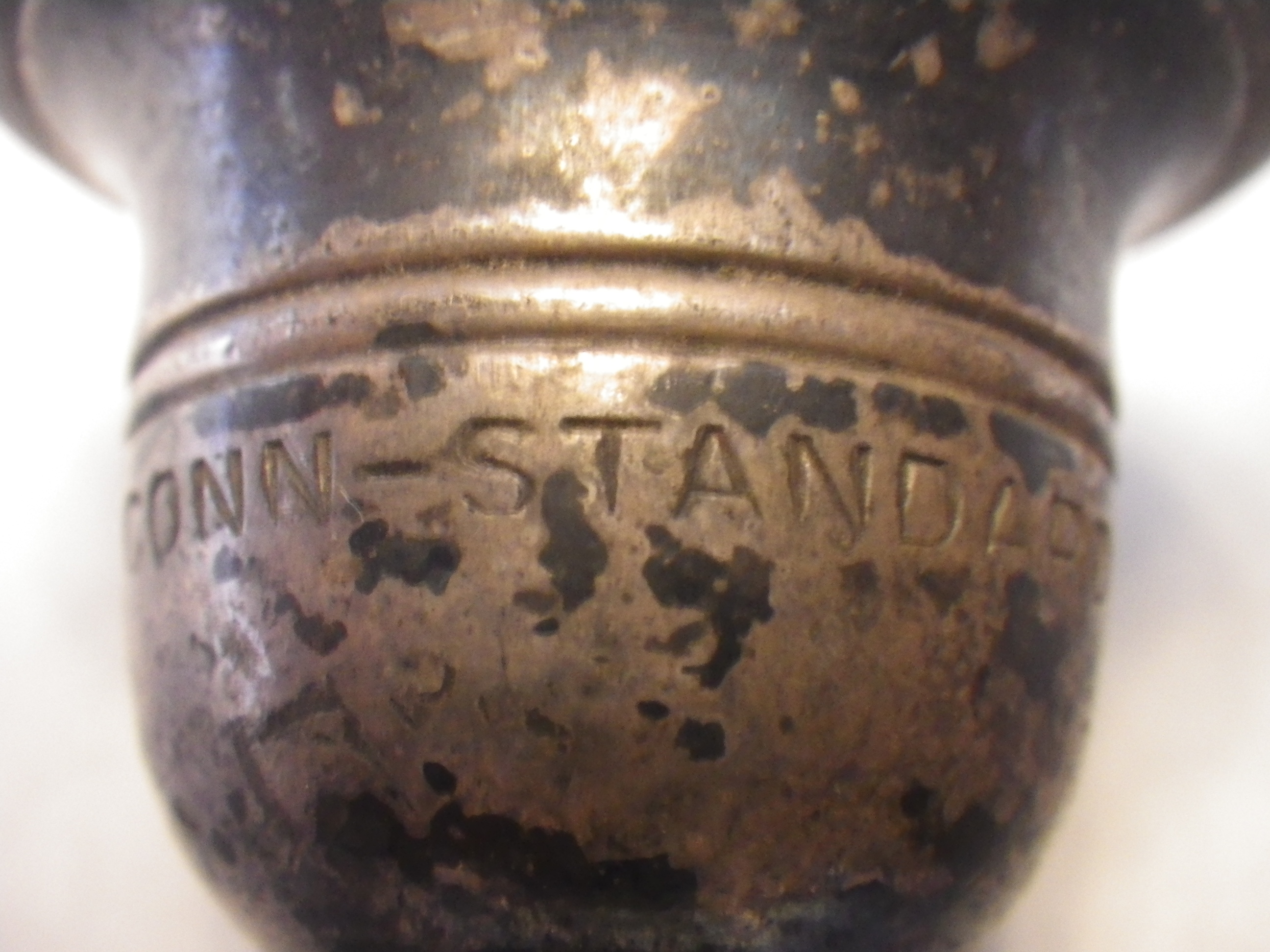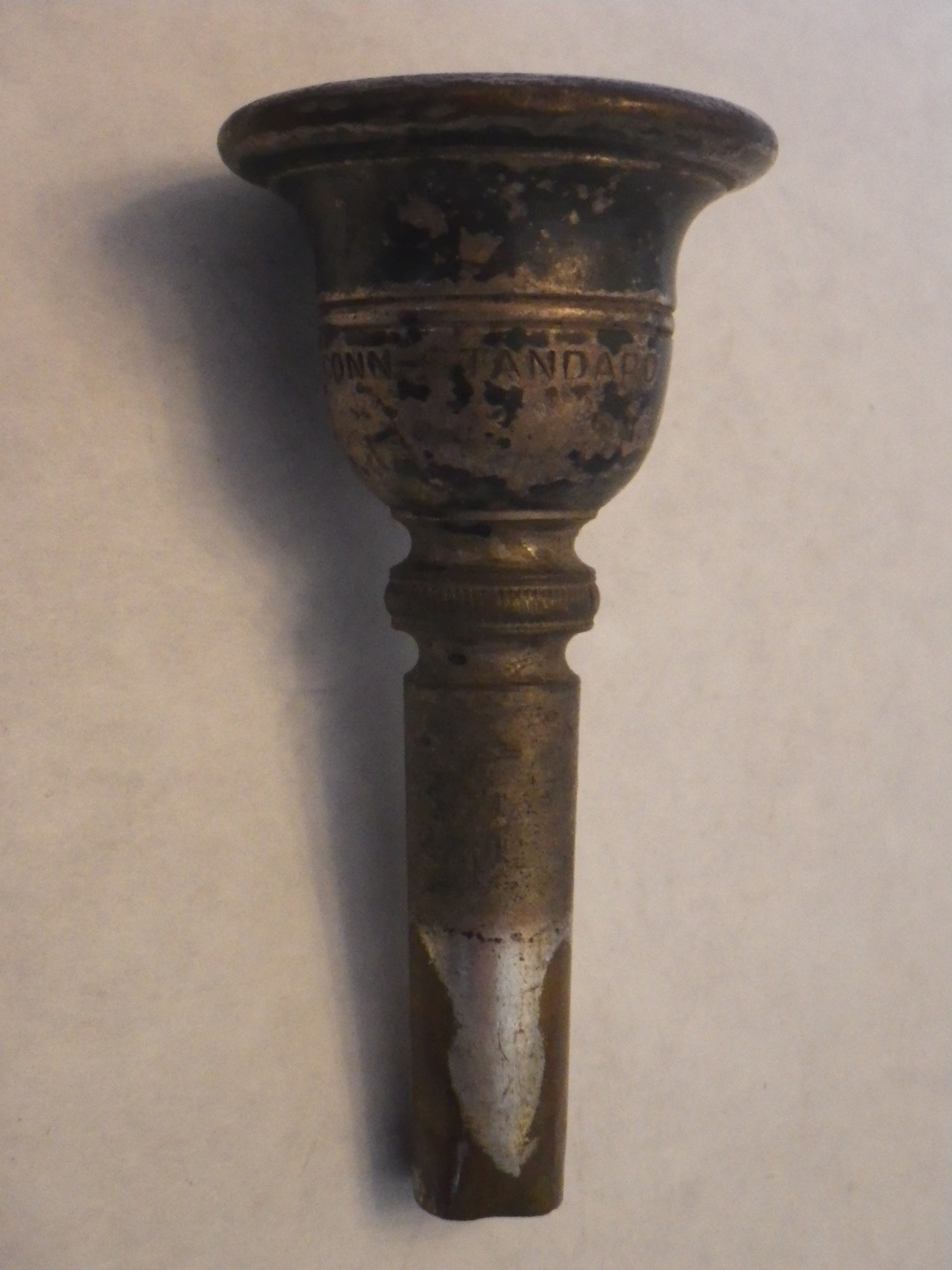 Conn Standard Tuba Mouthpiece Tag #: M201438 Length Inner Rim Diameter Throat Diameter Cup Depth Shank End Diameter 3.435″ 1.190″ .341″ 1.01″ .498″ Comments: “CONN – STANDARD″ text on side. Share this: Click to share on X (Opens in new window) X Click to share on Facebook (Opens in new window) Facebook Like Loading...