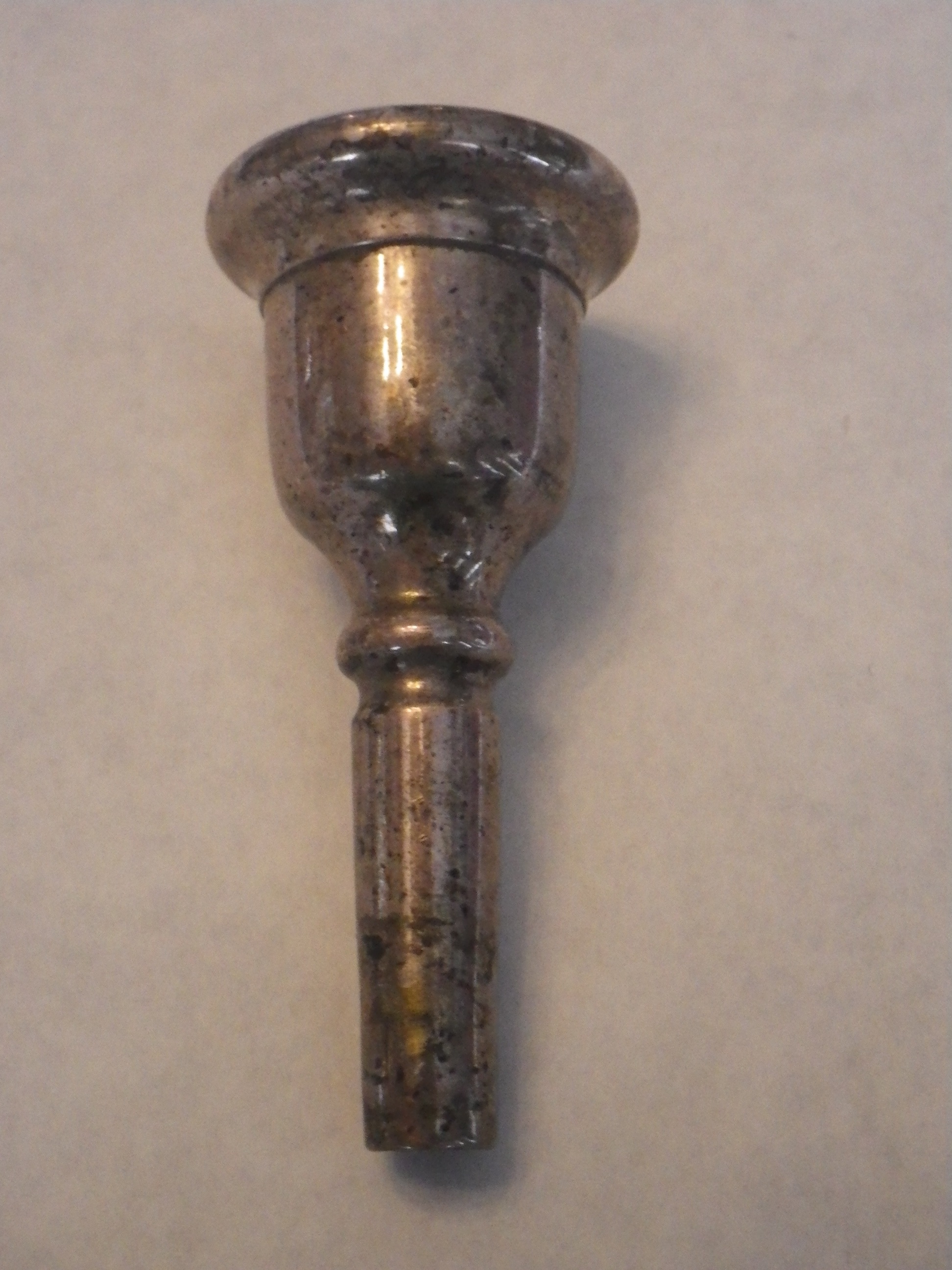 Unmarked Tuba Mouthpiece Tag #: M201412 Length Inner Rim Diameter Throat Diameter Cup Depth Shank End Diameter 3.890″ 1.315″ .298″ 1.29″ .541″ Comments: No markings on the mouthpiece. Share this: Click to share on X (Opens in new window) X Click to share on Facebook (Opens in new window) Facebook Like Loading...